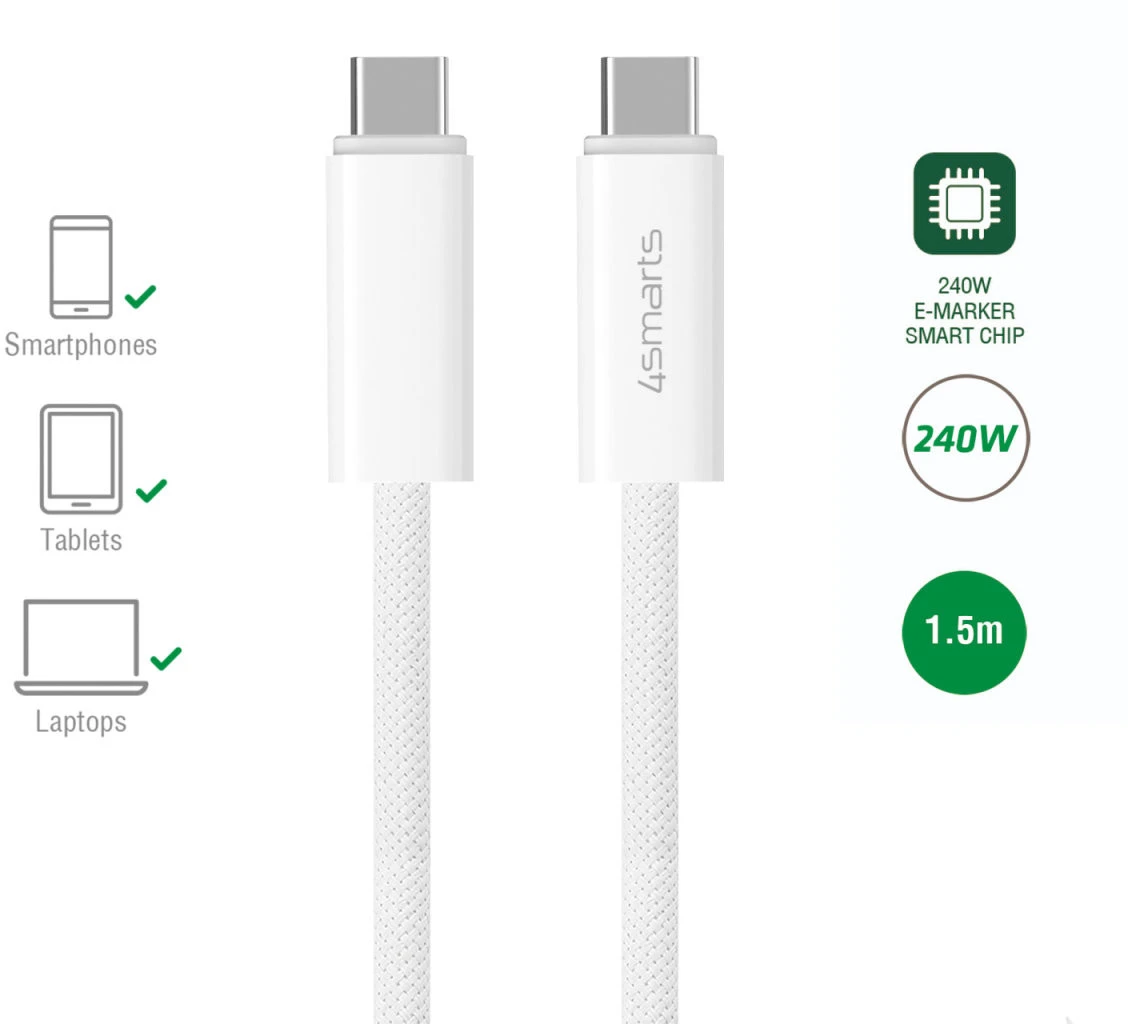 4Smarts USB-C Kabel PremiumCord 240W 1,5 m Weiß