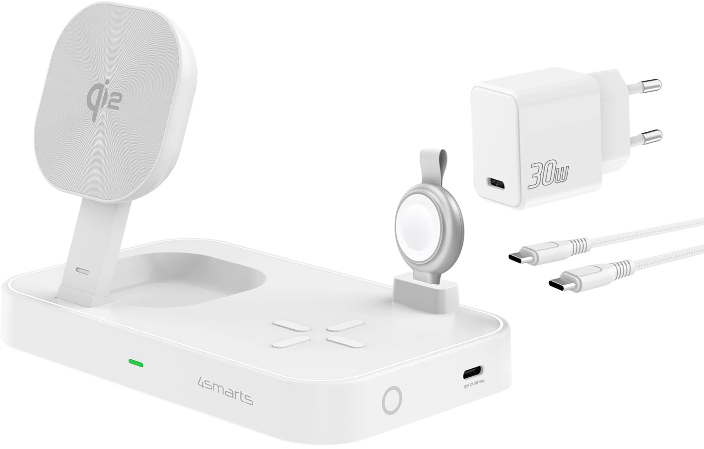 SOFORTSTART-KOMPLETTSET: Unser 3-in-1 MagSafe Ladeständer liefert maximale Leistung für drei Geräte gleichzeitig. Im Lieferumfang enthalten ist ein kraftvolles 30W Netzteil samt USB-C-Kabel, um ein schnelles und effizientes Laden zu gewährleisten. Diese Komplettlösung erspart dir den Kauf eines zusätzlichen Adapters. So kannst du deine Geräte direkt nach dem Auspacken aufladen.