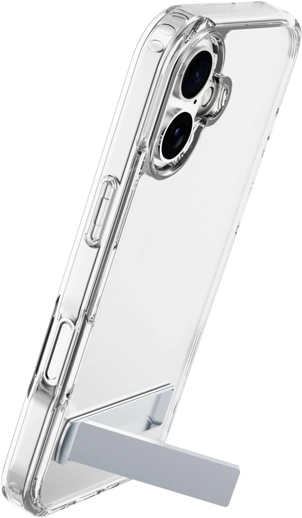 Clear Stand ist die transparente Schutzhülle mit integriertem Standfuß – ideal für freihändiges Telefonieren, Streaming oder Arbeiten. Sie besteht aus einem harten Rücken und stoßdämpfendem Gummirahmen und schützt zuverlässig vor Stößen und Stürzen. Erhöhte Kanten schützen Bildschirm und Kamera. Die antibakterielle Oberfläche und das Anti-Vergilbungs-Material sorgen für dauerhafte Hygiene und Klarheit.