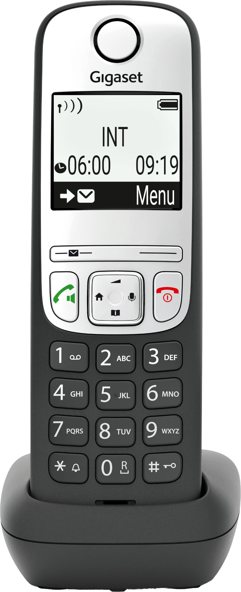 Besonders bei langen Telefonnummern mit vielen Ziffern verliert man schnell die Übersicht. Das große, beleuchtete schwarz-weiße Display des Gigaset E290 hingegen lässt sich auf Ihre bevorzugte Kontraststärke einstellen und ermöglicht so beste Lesbarkeit. Im Jumbo-Modus werden alle Ziffern, die Sie wählen, extra groß angezeigt. Auch im Menü sorgt der sogenannte Single-Icon Modus, also ein Symbol per Displayseite, für besonders einfaches Navigieren.