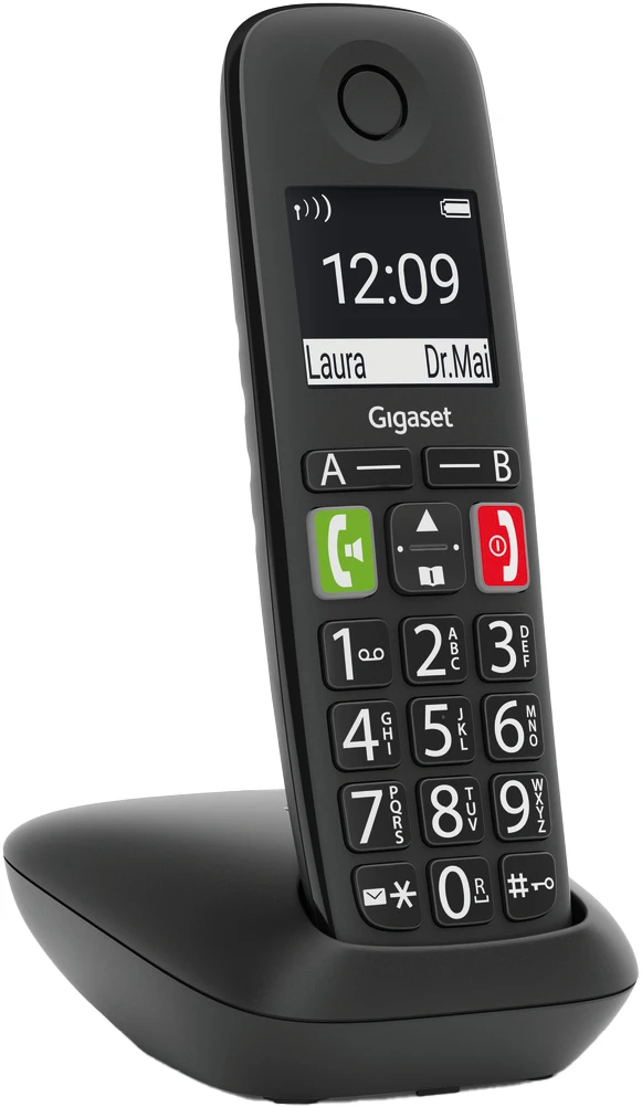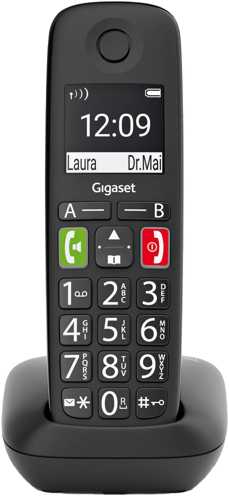 Das einfache Wählen einer Telefonnummer ist der Auftakt zu einem angenehmen Telefonerlebnis. Genau deswegen macht die ergonomische Tastatur des Großtastentelefons Gigaset E290 die Bedienung jetzt so komfortabel wie möglich: Große, beleuchtete sowie deutlich beschriftete Tasten sorgen für gute Lesbarkeit. Besonders wichtige Kontakte, zum Beispiel für den Notfall, können Sie auf einer der beiden Zielwahltasten A / B einspeichern. Wenn von dem Telefon aus nur eine Rufnummer angewählt werden soll, ist die Direktruf-Funktion hilfreich. In schwierigen Situationen reicht das Drücken einer beliebigen Taste um eine vorab hinterlegte Telefonnummer zu aktivieren.
